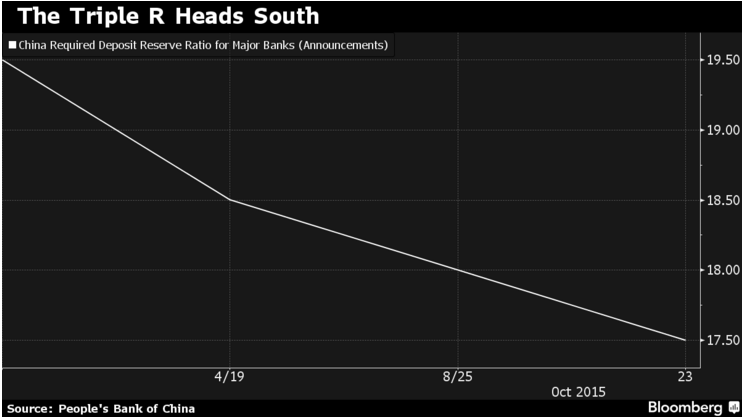 The required reserve ratio varies for Chinese lenders, and PBOC started to include mainland yuan deposits of offshore participant banks in reserve requirements last year. It was decided in December 2014, but that the ratio was set at zero temporarily to allow for preparation. It is no coincidence that the PBoC is 'normalising' the RRR now. Previously used to moderate market liquidity, RRR rate is now a tool to enforce financial stability. The RRR rate will this year fall to 15 percent from 17.5 percent for major banks, according to the median estimate in a Bloomberg survey.