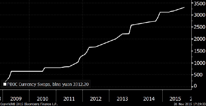 Tom Orlik, Bloomberg's chief Asia economist shared a chart in Twitter (attached) that show since 2010, PBoC's swap agreement has risen 7 fold from just around Yuan 500 billion to Yuan 3.3 trillion.