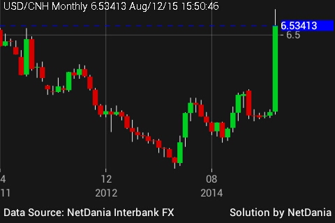 Offshore Yuan touched its weakest level since 2012, currently trading at 6.5261 against Dollar (USD/CNH).