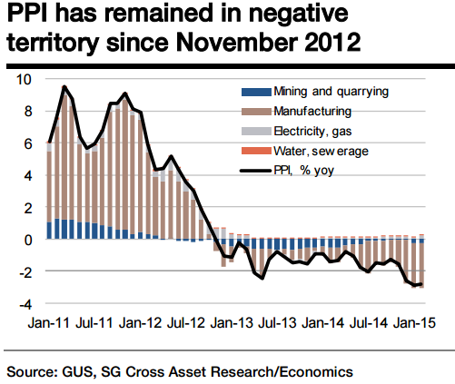 - Still, there is strong downward pressure on manufacturing costs and, in our view, the PPI will remain below zero until end-2015.