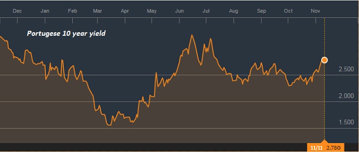 10 year Portuguese sovereign bond is hovering around 2.8%, a level not seen since July.