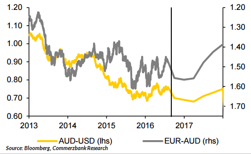 The reaction was also because of the marked appreciation of the Australian dollar since the beginning of 2016 when the market did not respond to the central bank’s cautions that the strong AUD was exerting pressure on the outlook of inflation, said Commerzbank in a research note.