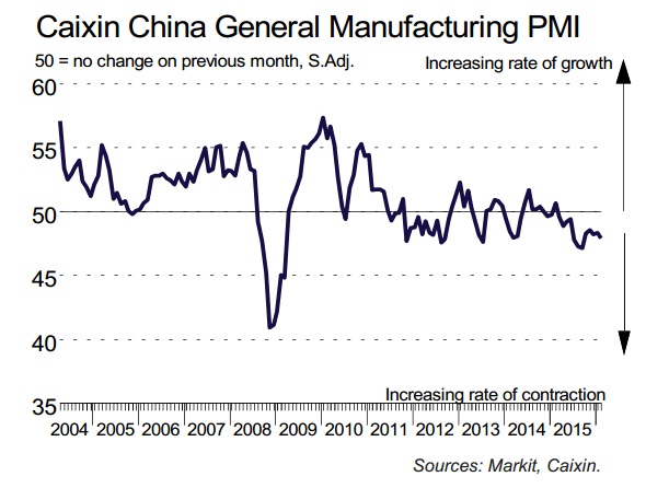 Caixin report clearly points out at prevalent weakness in Chinese economy and any recovery could still be quite far away as it yet to reach stabilization.