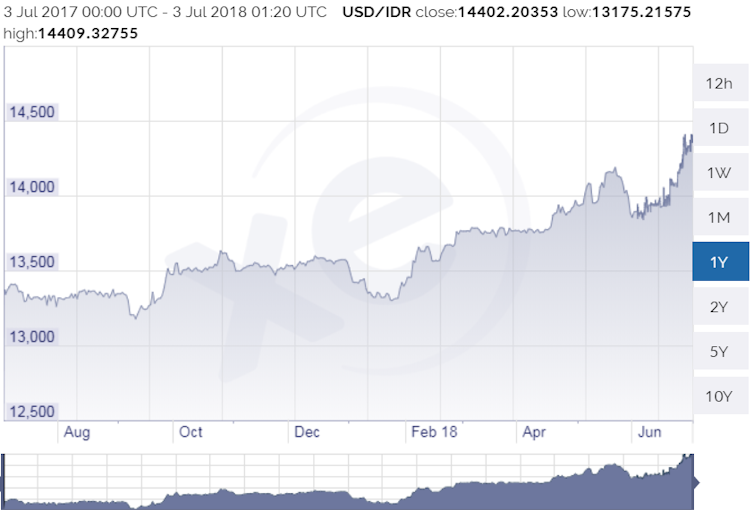 The country’s central bank, Bank Indonesia, has intervened several times by buying sovereign bonds and selling foreign currency to stabilise the rupiah. However, the currency’s downward trend continues. As of July 13 2018, the rupiah stood at around Rp14,400 per US dollar.