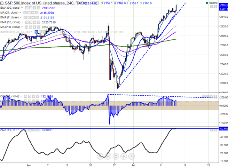 - S&P500 has made a high of 2163.5 at the time of writing and is currently trading around 2162.5.