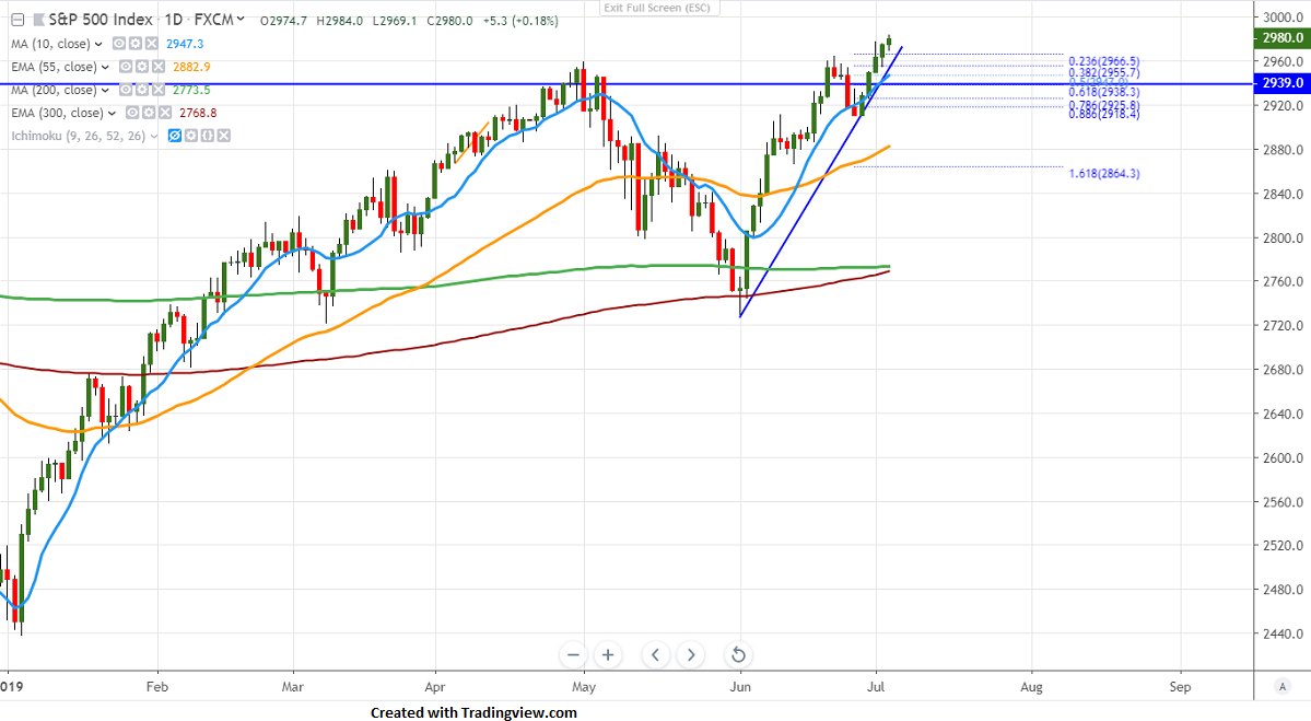 S&P500 is trading higher for the 4th consecutive day and jumped nearly 80 points after Trump and Xi Jinping have agreed to resume trade talks. It hits a fresh all-time high at 2981 and is currently trading around 2979.