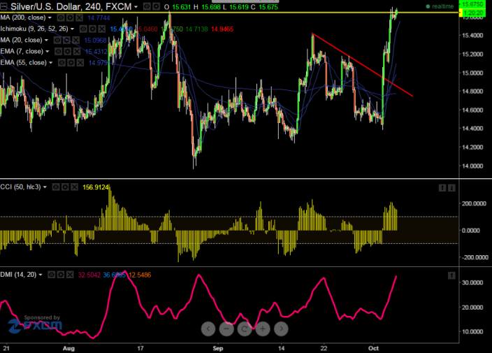 Silver has broken major resistance around $15.60 which confirms short term bullishness, a jump till $16.05/$16.45 is possible.