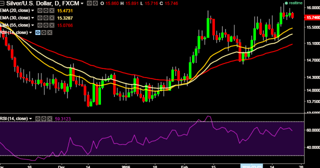 - XAG/USD is currently trading around $15.74 levels.