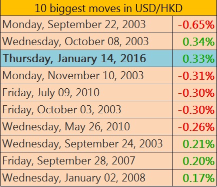 Today, due to heavy speculative pressure, USD/HKD pair posted one of its biggest daily moves in history. Third biggest in last 16 years. Today, HKD depreciated 0.325 against USD and currently trading at 7.7883. Possibility is rising of upside intervention into the pair by HKMA.