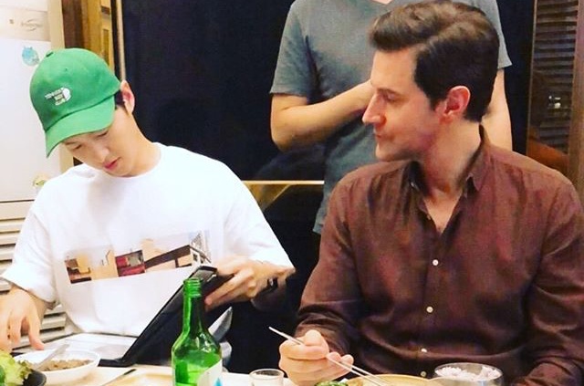 It turned out that the dinner was held in Sariwon restaurant and Song Joong Ki was with a group of people from his new movie called “Victory.” This was clarified when English actor Richard Armitage also posted a photo of him and the Korean actor while they dine.