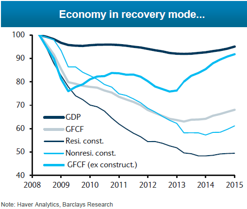 Barclays sees a soild recovery in Spanish economy due to the following aspects