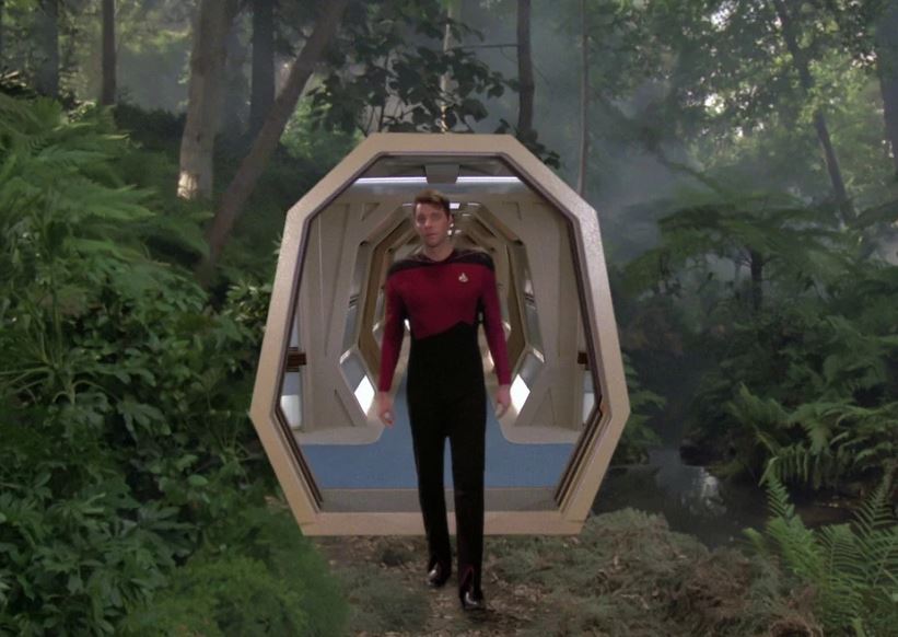 From Holodeck ‘reality’ to just an empty room with Counselor Deanna Troi (Marina Sirtis, left) and William Riker (Jonathan Frakes, right). Star Trek/Screenshot/Memory Alpha, CC BY-NC