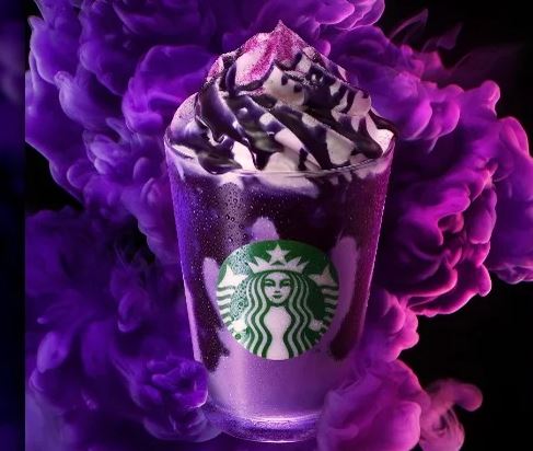 Purple sweet potato powder and purple sweet potato vanilla sauce are both featured in the blended cream-based Purple Halloween Frappuccino.