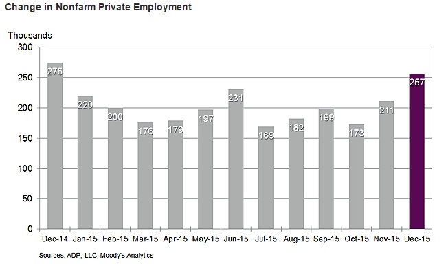 - Non-farm private sector employment grew at 257,000 in December, median expectation was for 192,000.