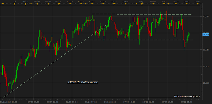 FXCM US Dollar index, has broken below its recent range of 12060-11980 to the downside and traded as low as 11946.