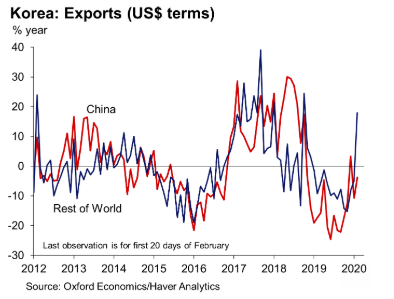 The coronavirus outbreak is expected to dampen South Korea’s exports and industrial production due to weaker Chinese demand. This is mainly due to the lockdowns in several Chinese cities and delays in economic activity resuming after the Chinese New Year, according to the latest research report from Oxford Economics.