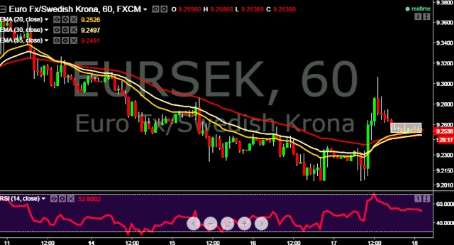 We prefer to take short position in EUR/SEK around 9.2550, stop loss 9.2656 and target 9.2243 marks.
