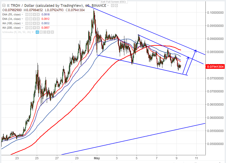 - Technically, Tron has broken major near term support 0.0800 and any convincing break below will take to next level till 0.075 (20- day MA and trend line support)/0.0700.