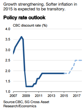"There is only limited softness in the core inflation due to a slightly stronger currency (TWD) in trade-weighted terms. Nevertheless, the disinflationary environment in the near term and the increasing global monetary easing since last year, especially that from its neighbours Korea, Japan and China, will probably make the central bank on hold throughout 2015", says Societe Generale.