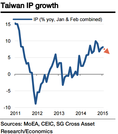 Taiwan's industrial production (IP) is likely to have softened to 2.9% yoy in February from 8.1% yoy in January due to the shifting schedule of Lunar New Year.