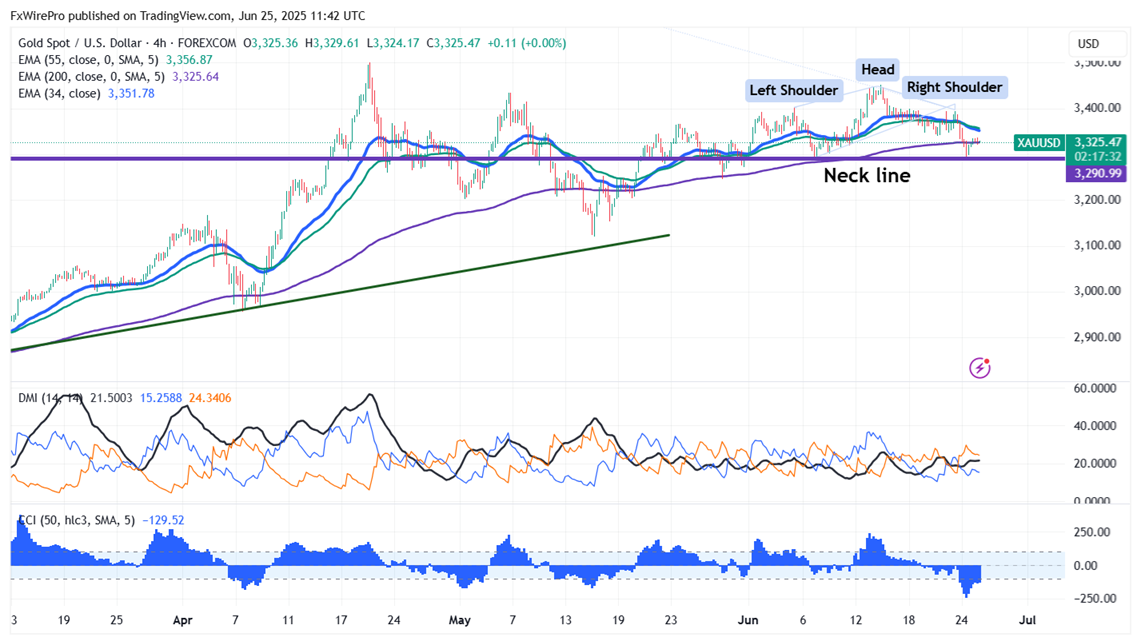 Gold pared most of its gains as Israel and Iran ceasefire agreement. It hits an low of $3295 and is currently trading around $3327.