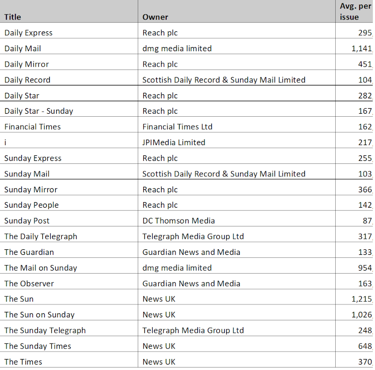 But until the ABC metrics change, the most fascinating aspect will be whether The Sun can retain the accolade of the UK’s top-selling newspaper. With the red top newspaper’s total average circulation of 1,215,852 declining 13% year-on-year – compared to a fall for the Daily Mail of just 7% to 1,141,178, there well be change at the top in 2020.