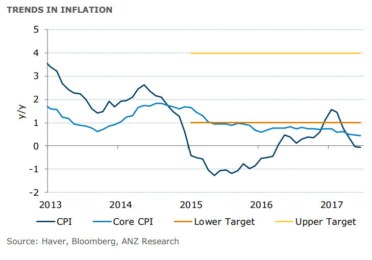 Thailand's headline inflation has remained below the central bank’s 1-4 percent inflation target range for four consecutive months. Core inflation also remained soft, reflecting the lacklustre domestic demand conditions. Weak headline reading has given policymakers plenty of room to keep rates low. Analysts expect The Bank of Thailand (BoT) to keep rates steady at 1.50 percent through 2017.