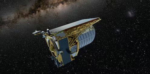 The European Space Agency’s (ESA) Euclid satellite completed the first part of its long journey into space on May 1 2023, when it arrived in Florida on a boat from Italy. It is scheduled to lift off on a Falcon 9 rocket, built by SpaceX, from Cape Canaveral in early July.
