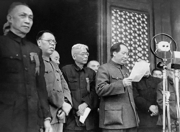 Mao Zedong declares the establishment of the People’s Republic of China on 1 October, 1949. Wikimedia Commons