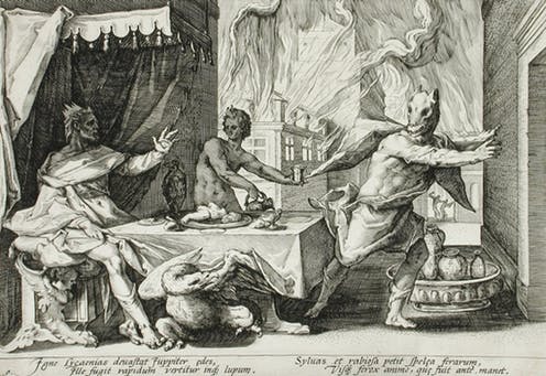 The most interesting aspect of Plato’s passage concerns the “protector-turned-tyrant”, also known as the mythical king, Lycaon. Expanded further in Latin texts, most notably Hyginus’s Fabulae and Ovid’s Metamorphoses, Lycaon’s story contains all the elements of a modern werewolf tale: immoral behaviour, murder and cannibalism.