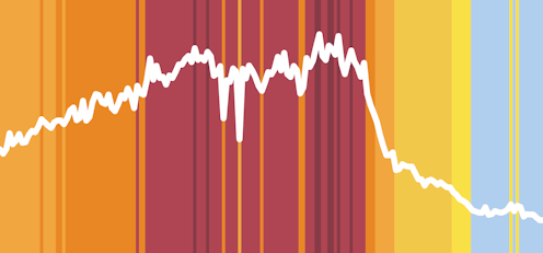 Darker colours represent higher levels of particulate matter known as PM. https://airqualitystripes.info/, CC BY-ND