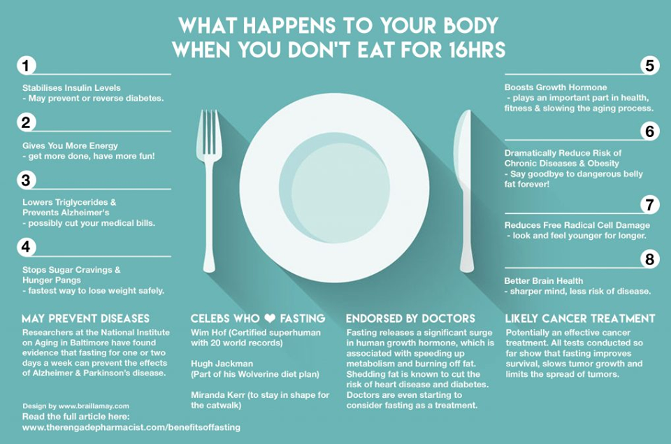 Some suggested that people should not force their bodies to immediately follow intermittent fasting eating pattern or they’ll likely quit before seeing results. Perhaps a four-month transition period would be best, to allow the body to gradually adjust and ease itself to the new eating plan.