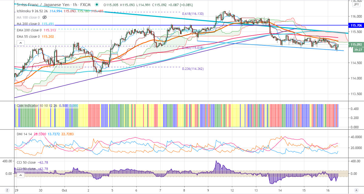 CHFJPY is trading in a narrow range between115.40 and 114.86 for the past three trading days. The pair has lost more than 100 pips from a minor top 116.19 due to the strong yen. The rise in the number of new corona cases and delay in US stimulus has increased demand for safe-haven like the yen. The intraday trend of this pair remains neutral as long as resistance 115.50 holds.