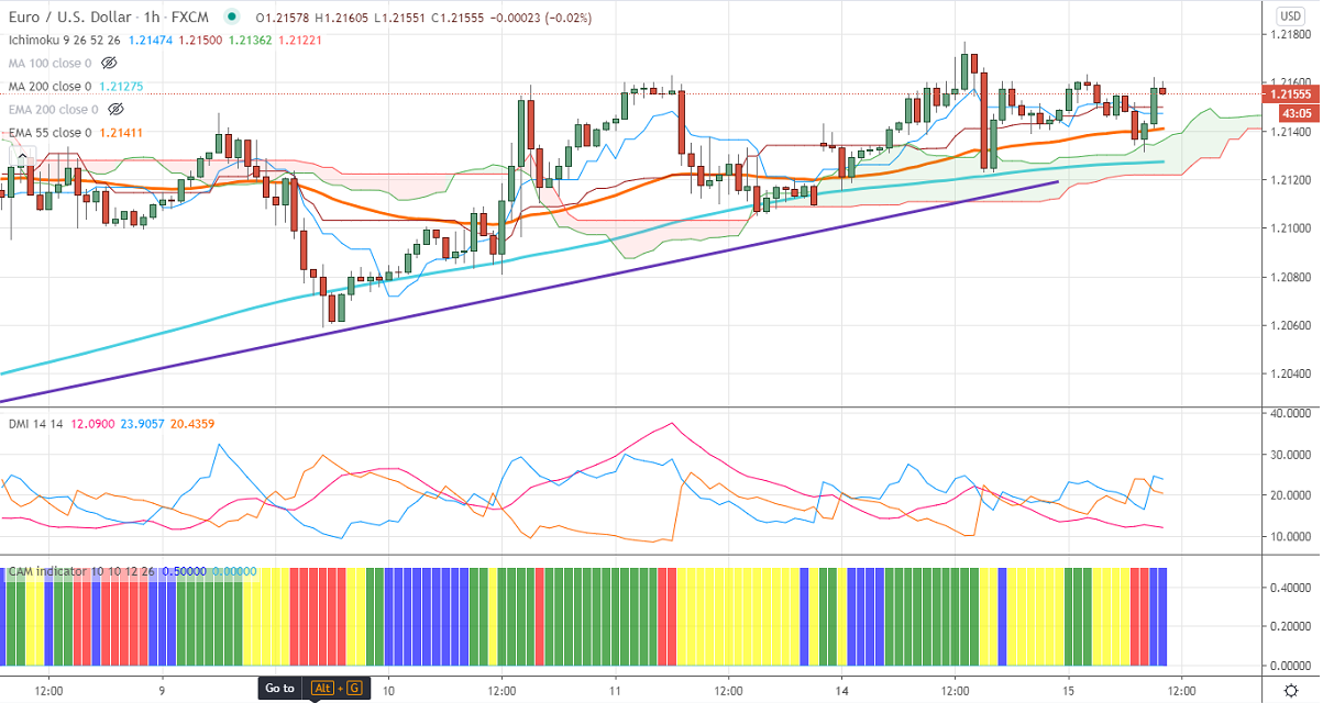 EURUSD is holding above the 1.2150 level in hopes of the COVID-19 stimulus package. The US lawmakers have formulated a new Coronavirus stimulus package of $908 billion on Monday. The pair hits fresh year high at 1.2178776 on Dec 4th and struggling to break above that level. Markets eye Brexit talks on Brussels for further direction.ID-19 optimism. The surge in the number of coronavirus cases and lockdown in Germany is putting pressure on this pair at higher levels.DXY is trading below the 91 levels; Any bearish continuation only below 90.50. Short term trend of EURUSD is bullish as long as support 1.2135 holds.