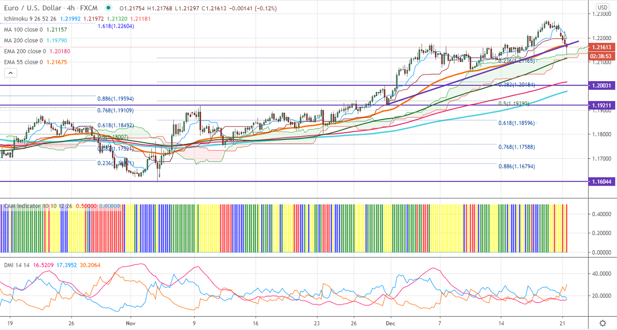 EURUSD has halted its three weeks of the bullish trend and lost more than 100 pips on COVID-19. UK has been affected by contagious new Coronavirus stain in the UK. The government locked down London for months and canceled Christmas celebrations. DXY recovered more than 100 pips, significant bullishness only above 91.50. Short term trend of EURUSD is bullish as long as support 1.2130 holds.