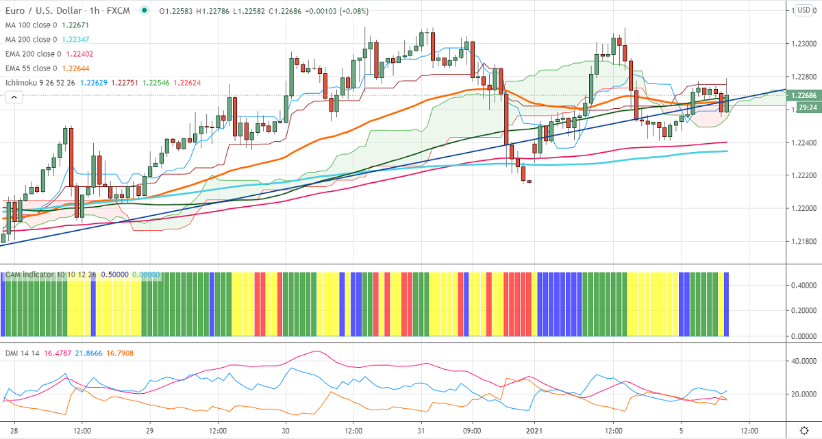 EURUSD took support near 200- H MA and shown a minor recovery. Markets eye run-off elections in Georgia today for further directions. The surge in coronavirus and lockdown restrictions in the UK is supporting the US dollar at higher levels. The intraday trend of EURUSD is neutral as long as resistance 1.23200 holds.
