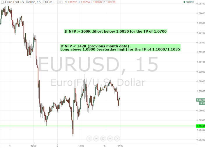 If Non Farm Payroll comes above 200k - Short EUR/USD below 1.0850 for the TP 1.0740/1.0700/1.0650 with SL around 1.0910.