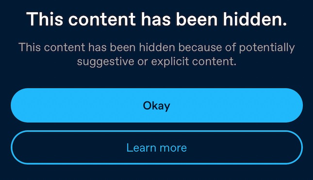 The company added that if a blog is flagged as having mature or sensitive content, users might not be able to open the post on the Tumblr iOS app. If the changes result in zero search results or prohibited blog access, users will start seeing a new message (see photo above) telling them that the content is “hidden” because it might be suggestive or explicit.