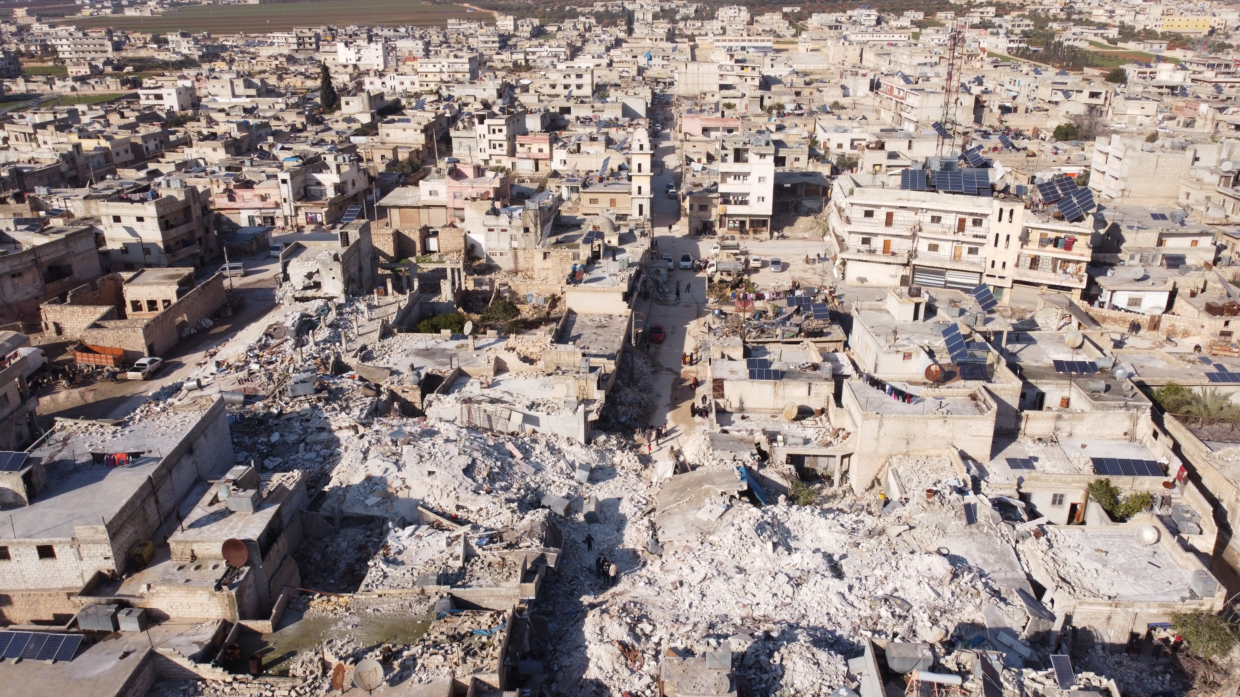A drone photo showing the massive devastation in Aleppo, Syria, caused by the Feb. 6 earthquake in Syria and Turkey. (Shutterstock)