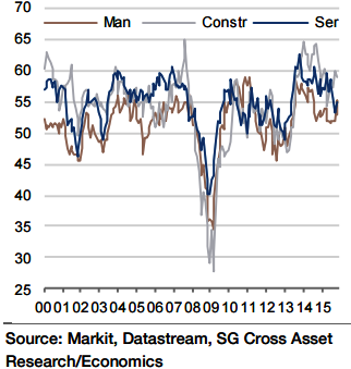 "The picture should be little changed in the November survey, given the lack of change in the underlying conditions. We predict a small drop from 58.8 to 58.5", says Societe Generale in a research note.