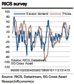 "These features is expected to continue in the August survey. It is notable, however, that the widely-watched Halifax and Nationwide house price series have yet to show the upturn displayed by the RICS price series", said Societe Generale in a research note to its client.