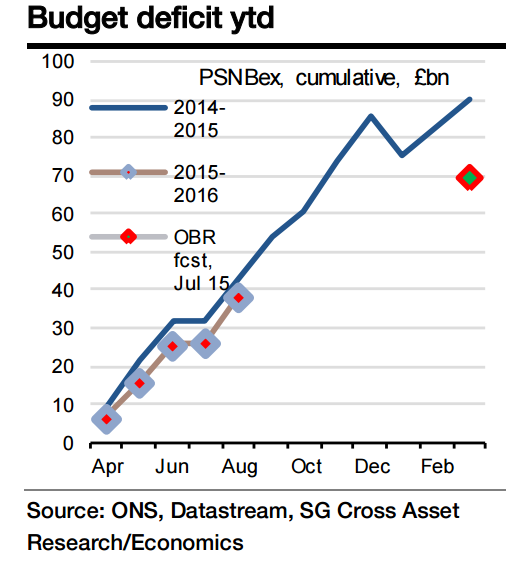 "For September we predict that the deficit will be the same as a year earlier at £11.0bn," notes Societe Generale.