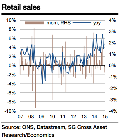 "We predict very weak growth of only 0.1% mom with most of the risk being to the downside. Sales could easily have fallen", continued Societe Generale.