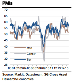 The service sector PMI of U.K. excludes the retail sector which unfortunately is one of the few areas of the service sector for which information is available timely. This makes it difficult to track services output well on a monthly basis so we need to rely instead on own assessment of the underlying drivers.