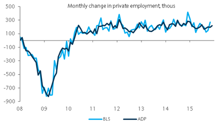 "We place limited weight on the ADP employment report given the history of revisions and frequent divergence with the Labor Department's initial estimates. That said, this morning's print is consistent with our outlook for nonfarm payroll growth of 200k and a one-tenth decline in the unemployment rate in Friday's official employment report", says Barclays.