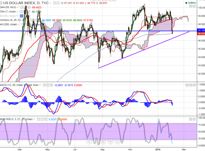 - Dollar index has broken major support 97.20 and declined till 96.77 at the time of writing. It is currently trading around 96.80.
