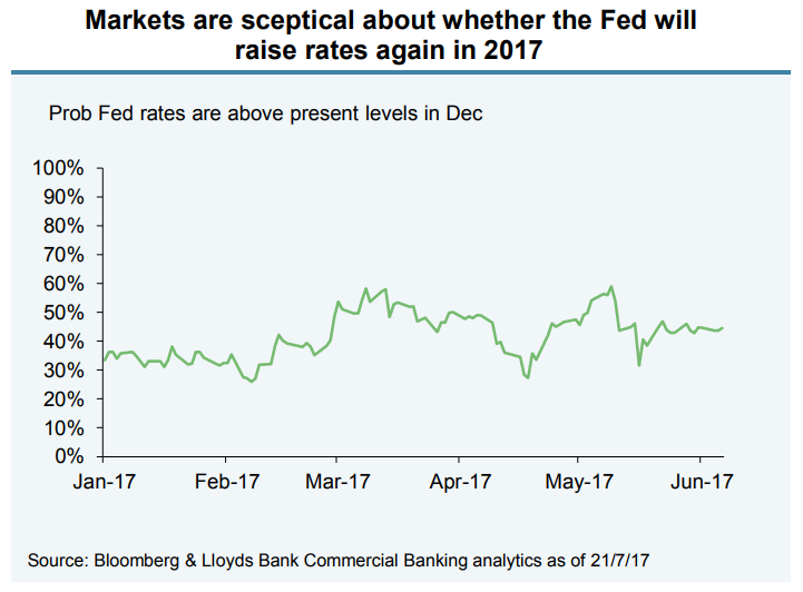 "We expect the US Federal Reserve to leave its policy interest rates unchanged at its 25th-26th July policy meeting. With financial markets attaching virtually a zero probability to a July monetary policy change, any move would be a huge surprise. But we see no reason why the Fed would want to deviate from market expectations," said Lloyds Bank in a report.