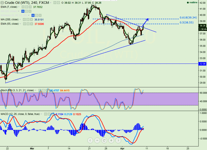 - US Oil has taken support near 200 day 4H MA and recovered from that level. It is currently trading around $38.16.