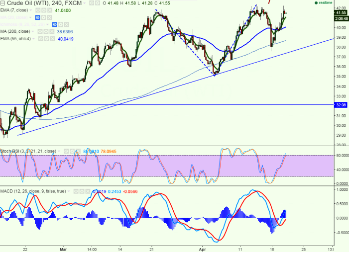 - US Oil has made a high of $42.27 and slightly retreated from that level. It is currently trading around $41.40.