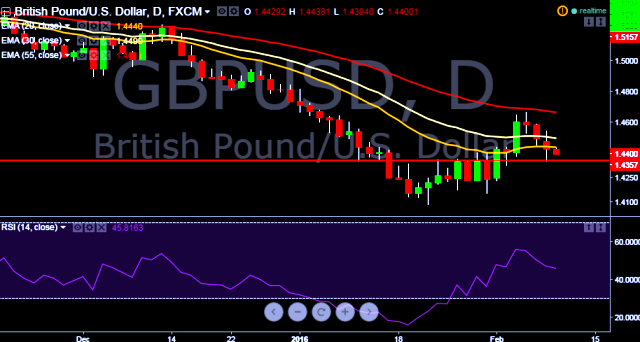 We prefer to take short position around $1.4425, stop loss $1.4546 and target $1.4229 levels.